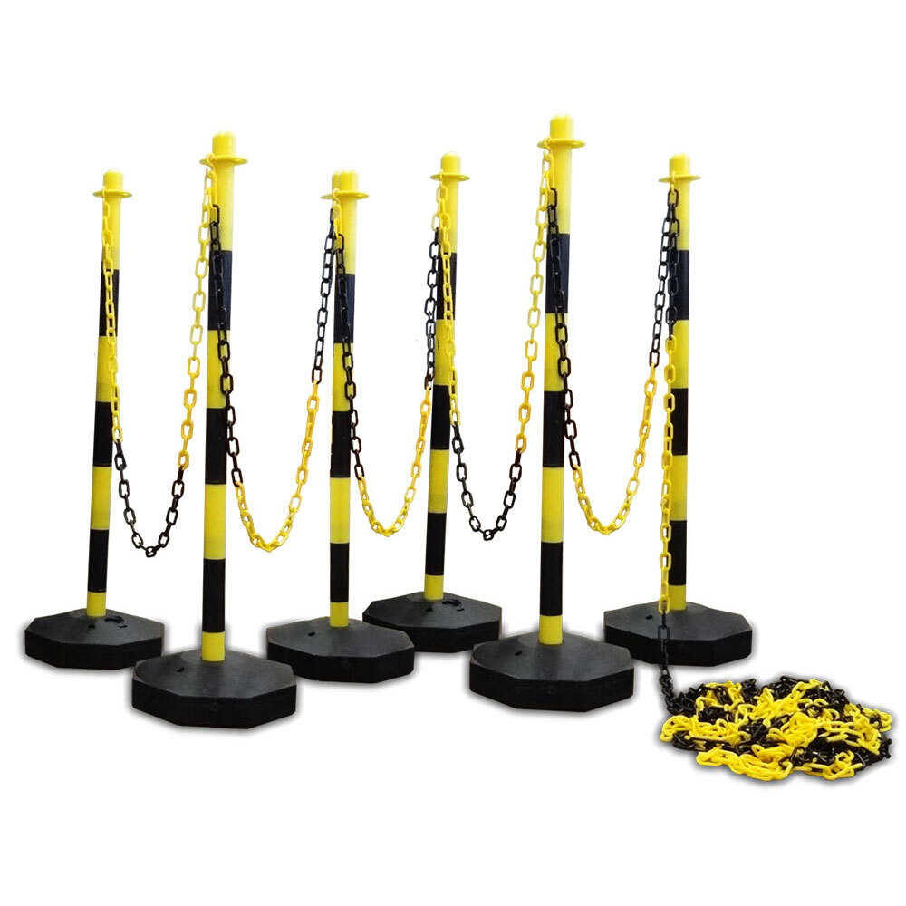 Kunststof kettingpalen geel-zwart met vulbare voet (set van 6 palen)